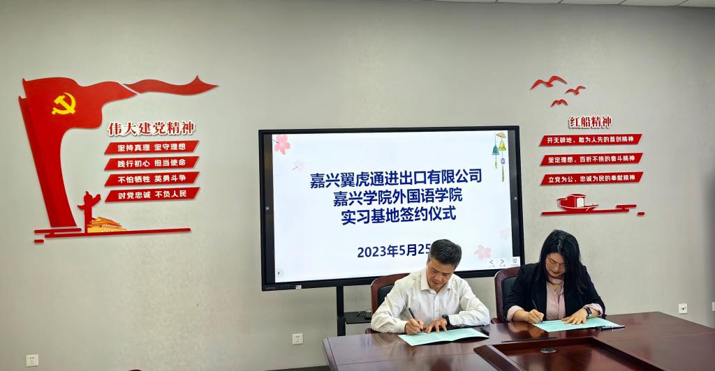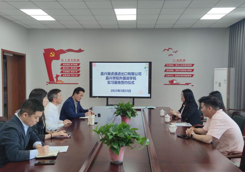 5月25日上午,91黑料 与嘉兴翼虎通进出口有限公司在兴德楼南楼516会议室就共建实践教学基地等方面进行洽谈,并举行了实习基地合作签字仪式。会议由副院长郭永恩主持,院长唐艳芳、书记周钰和日语系教师董旭阳参加了签约仪式。