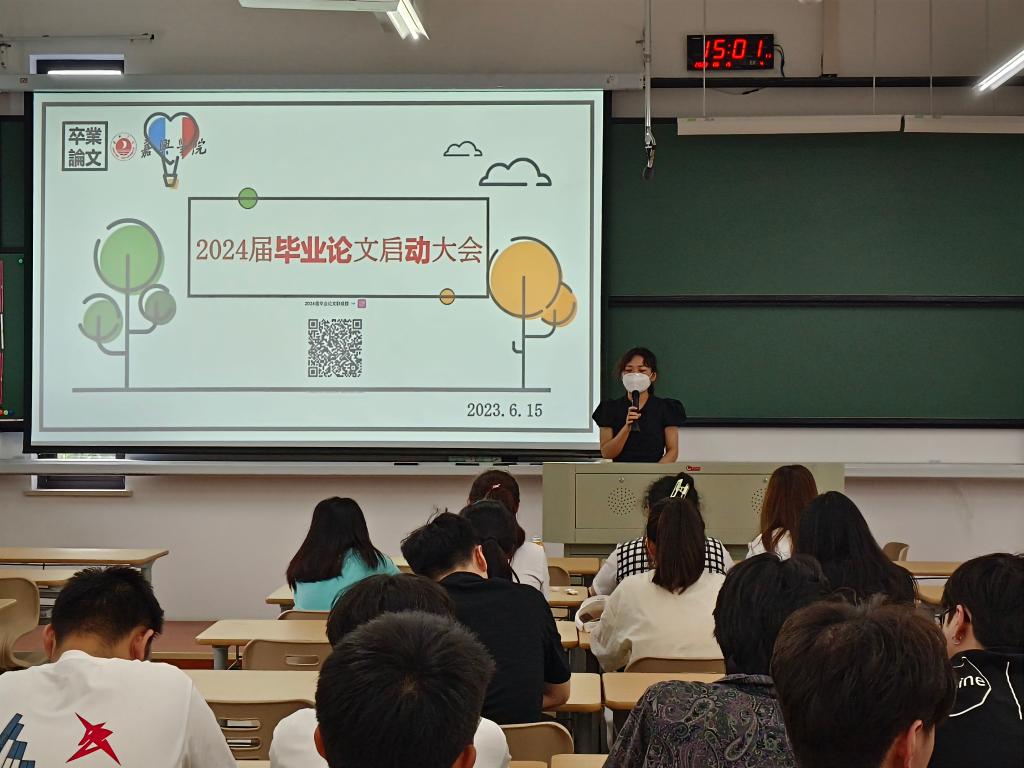 6月15日下午,外语学院日语专业在兴德楼205教室启动了2024届本科毕业论文工作,2024届日语专业所有学生和全体论文指导教师参加了启动仪式。启动仪式由日语教研室主任王雪老师主持,日语专业负责人郭永恩老师作了动员讲话。