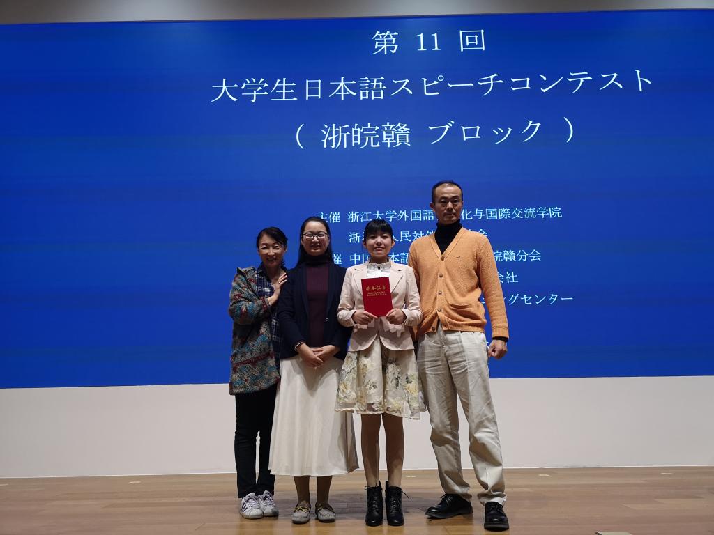 去年,我院日语专业学子曾获过省内日语演讲大赛的三等奖(徐欢)和二等奖(朱逸琳),这是我院日语专业连续两年再次斩获该赛大奖。