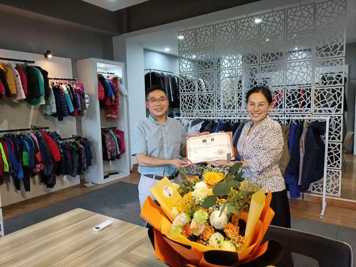 张冬华现任嘉兴永成制衣有限公司业务经理,毕业后,他一直从事外贸业务工作。他对学院一行表示欢迎和感谢,认为老师们的到来带给了他新惊喜。“英语语言是一门工具,没有这个工具就没办法跟客户交流。”张冬华谈到,外贸行业作为劳动密集型行业,随着人口红利的逐渐消失,成本有所增加,他们公司的外贸服装产品主要出口到日本、欧洲、美国、马来西亚,受疫情和人民币升值影响,业务量较往年有所下降,但公司仍然会以大品牌的要求严把质量关,以高质量的成品交付客户。张冬华带学院一行参观了公司的制衣车间,双方还就人才培养、开设实践课程、学生实训实习基地共建等方面的发展前景进行了探讨。