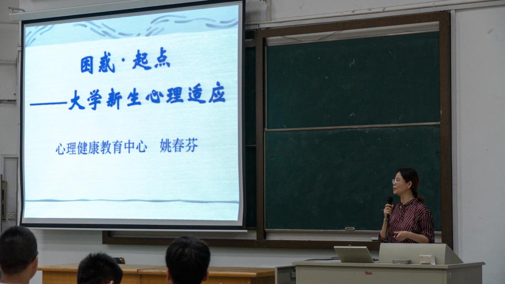 首先,姚春芬老师就同学们关注的学习与毕业、人际交往、自我接纳、个性发展的问题,结合案例进行详解。同时列举了心理问题可能引起的心理危害,并给予同学们疏导压力的方法。姚春芬老师介绍了学校的基本架构及各部职责,鼓励同学们在享受他人服务的同时也参与其中。接着,姚春芬老师就同学们的具体问题做了解答,以此增强同学们遇到困难时克服心理障碍的精神力量。也指出青年应该有感有怀,铭记长辈的教诲。并以“我来做什么,该怎么做?”的主题引导学生进行良性竞争。最后,姚老师以秀才考试的趣味故事让同学们了解到悦纳自我的重要性,为同学们开启大学崭新篇章提供了钥匙。