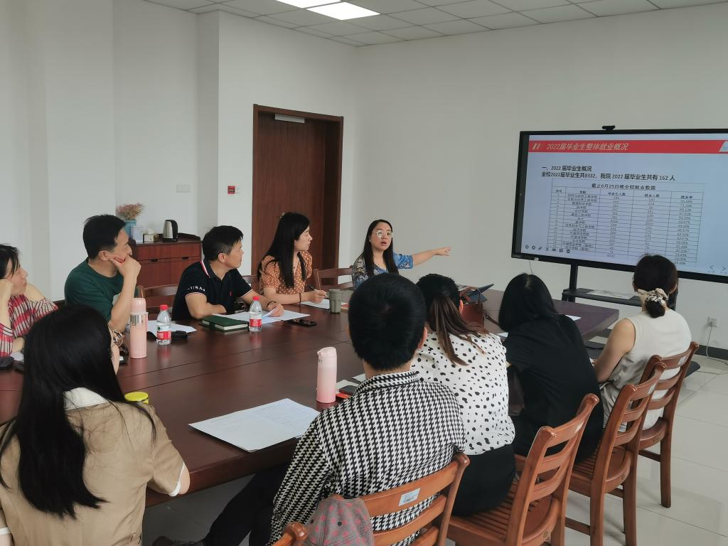 6月26日上午,91黑料 召开2022届毕业生就业工作专班会议。学院党政班子、系主任、辅导员、毕业班班主任参加会议,会议由党委副书记朱莹主持。