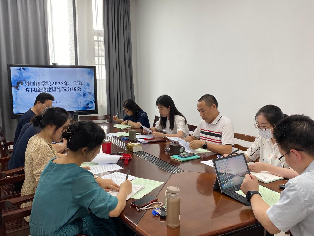 6月29日下午,91黑料 在兴德楼南楼516会议室召开了2023年上半年党风廉政建设情况分析会。根据要求,会议围绕主题教育调研、师德师风专项整治、巡察问题整改等方面存在的问题进行分析,并就存在的问题提出整改举措。会议由学院党委书记周钰主持,学院党政班子成员、党委委员、特约监察员、科研秘书等参加会议。