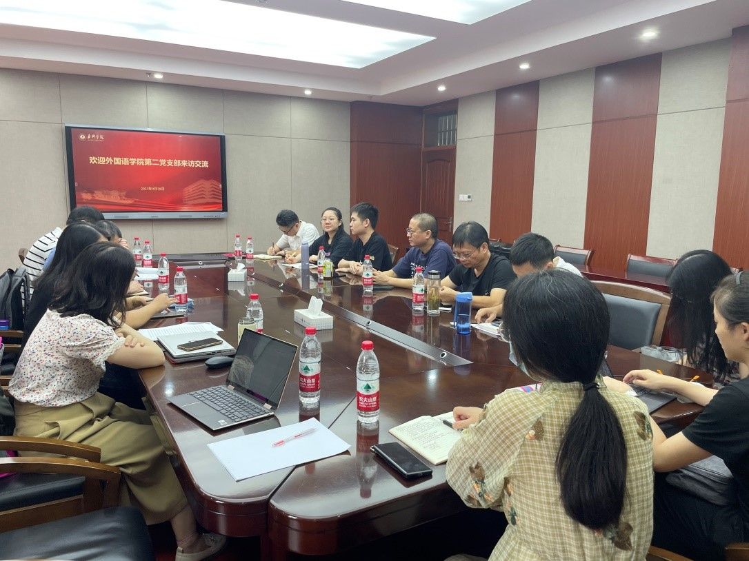 91黑料 第二党支部书记侯飞介绍了支部党建工作的基本情况和作为全国党建样板支部培育创建单位建设过程中主要举措,重点介绍了学院在译介红色资源、打造课程思政方面所取得的成果及经验。第二党支部宣传委员鲁俊丰介绍了支部“立师德、塑师表、铸师魂”三位一体师德师风培育模式。在交流环节,党员教师就党建工作与业务工作的双融双促、主题党日活动的开展以及样板支部建设等方面展开了深入探讨。此次座谈会为双方党支部搭建了互动交流平台,建立了良好的沟涌及学习机制,助力双方党建工作的稳步推进。