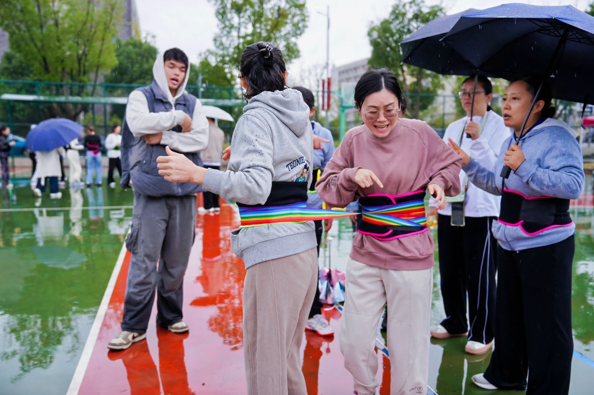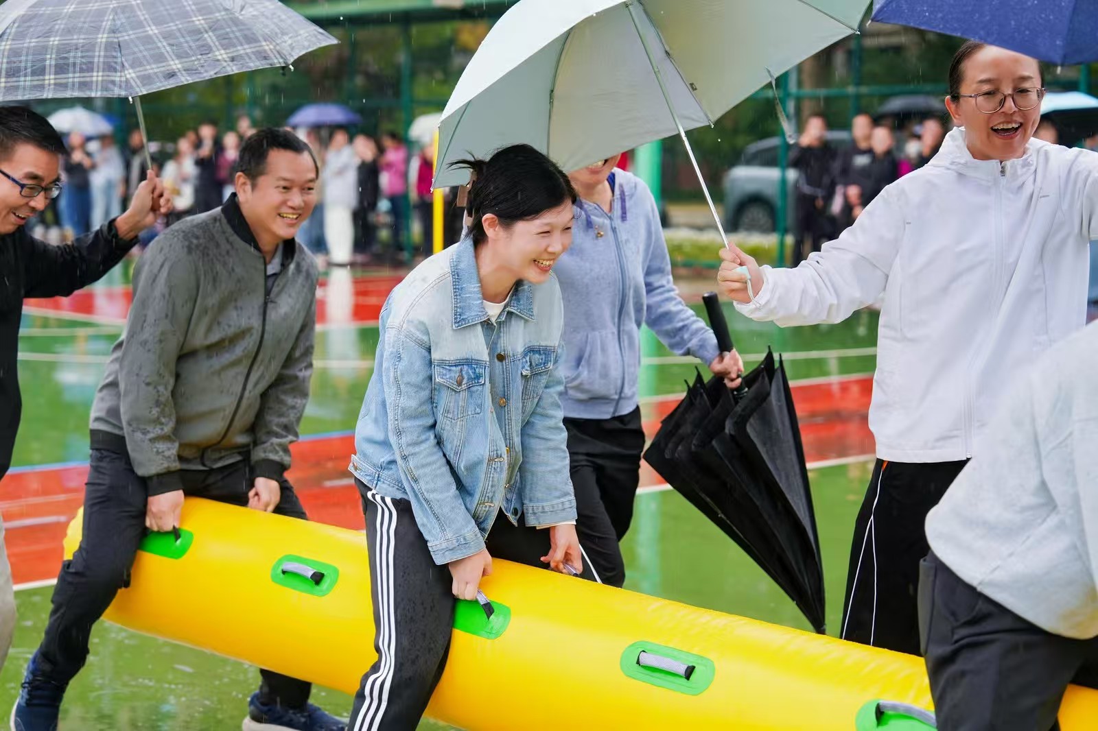 赛场上,91黑料 团队不仅点燃了拼搏的激情,更传递着团队的力量与友谊的温暖。每个项目进行时,未参赛的老师自发组成“后勤保障队”,为参赛选手打伞护航、擦干雨水;选手们成功时,大家相拥欢呼、共享喜悦;即便失利,也会互相拍肩鼓劲、总结经验。这份风雨中的守望相助,成为本次运动会上最温暖的风景线。