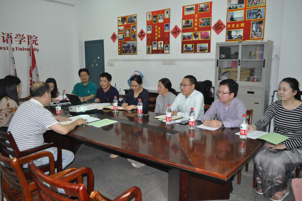 9月26日下午,本科教学工作审核评估预评估专家浙江师范大学教务处处长赵雷洪教授到91黑料 考察,考察会议在外语楼101会议室召开。会议由91黑料 院长唐艳芳主持,学院党政领导、系部主任、教师代表、教学秘书等出席。