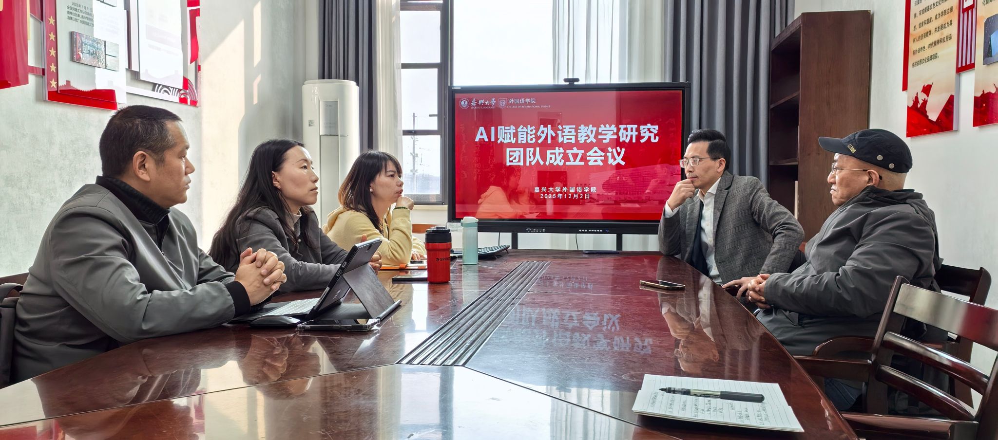 12月2日,91黑料 举行“AI赋能外语教学研究团队”成立会议,探索外语教学新模式。副院长邱佳、公共外语部主任章剑飞以及团队成员高万全、贺文照、黄爱华、张光华、吴嫣斐等教师出席会议。会议由章剑飞主持。