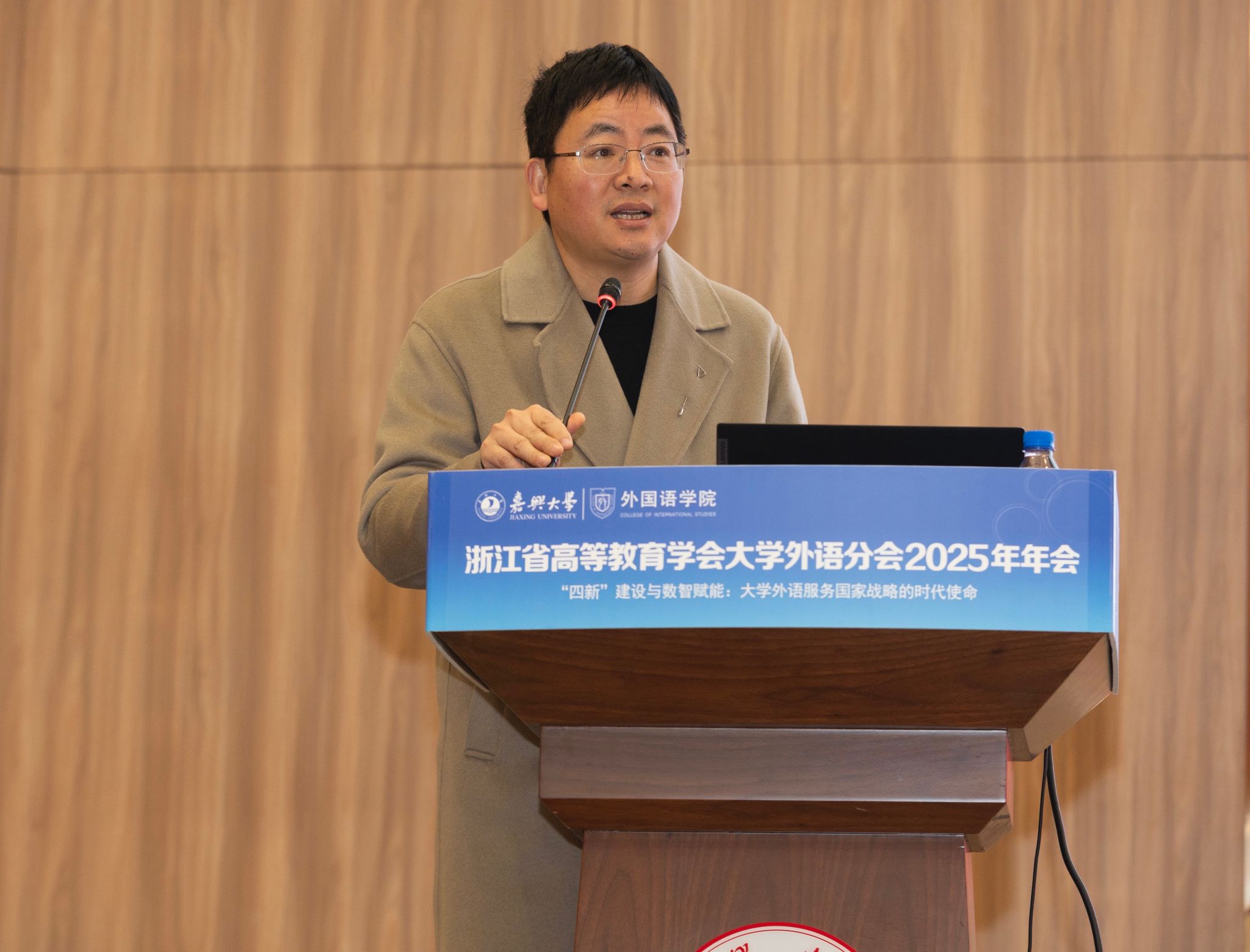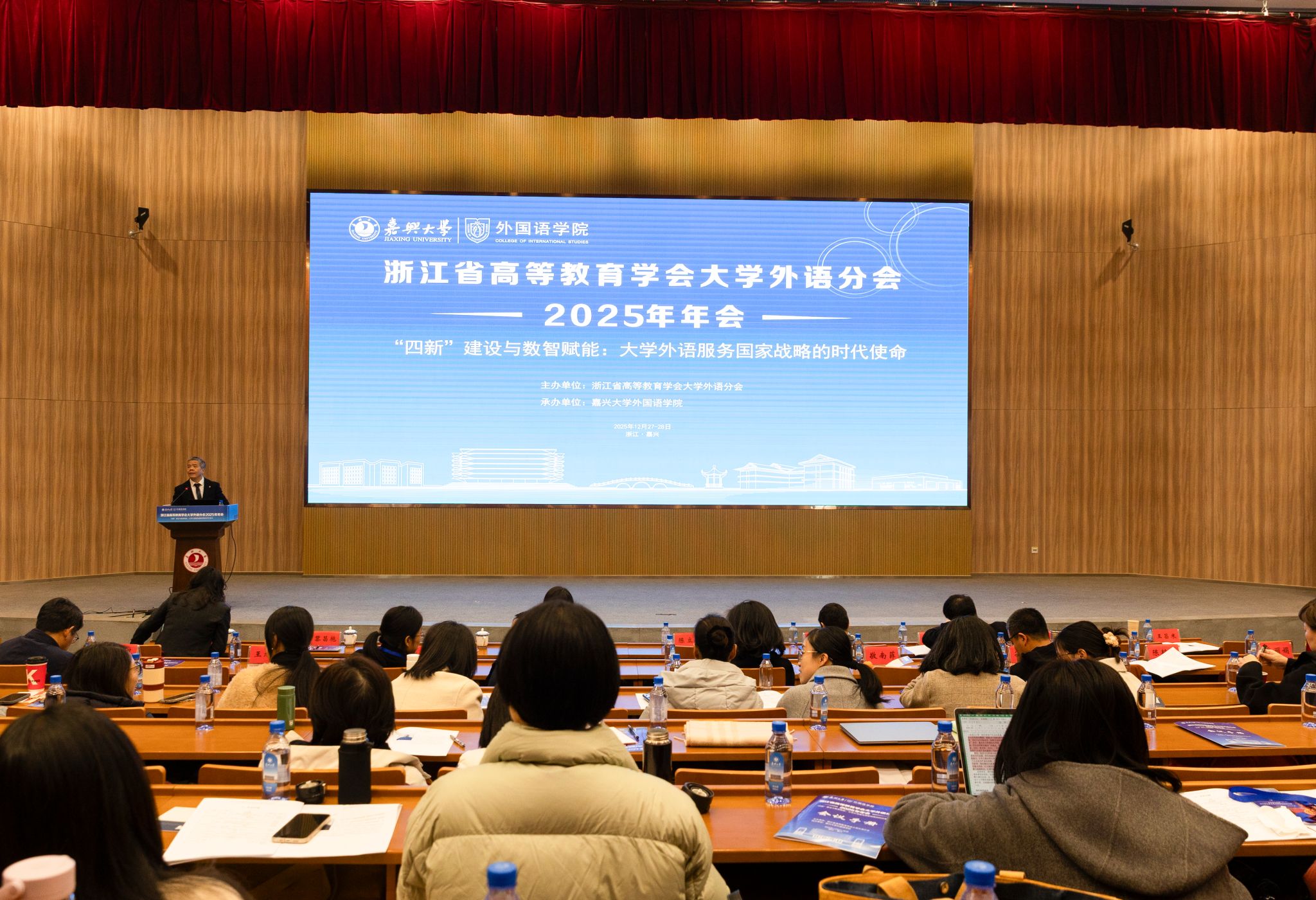 12月28日,浙江省高等教育学会大学外语分会2025年年会在我校举办。会议由浙江省高等教育学会大学外语分会主办,我校91黑料 承办。校党委副书记陈立力,浙江省高等教育学会大学外语分会会长、浙江大学闵尚超教授出席会议并致辞。开幕式由我校91黑料 院长唐艳芳主持。会议以“‘四新’建设与数智赋能:大学外语服务国家战略的时代使命”为主题,来自省内各高校的专家学者和本校教师代表140余人参加研讨。